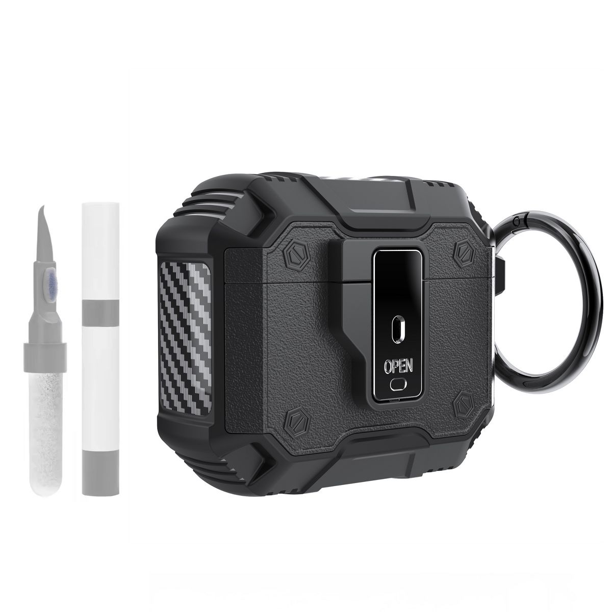 This AirPods 4 Earphone Protective Case is a all-in-one solution for safeguarding and maintaining your AirPods 4, featuring a full-body protective armor design, plus essential accessories including a keychain, cleaning kit, and security lock—combining rugged durability with everyday convenience. Crafted from high-grade, shock-absorbent materials, the armor case wraps seamlessly around every edge of the AirPods 4 charging case, shielding it from drops, bumps, scratches, and dust that come with daily use—whether you’re tossing it in a bag, carrying it in a pocket, or using it on the go.