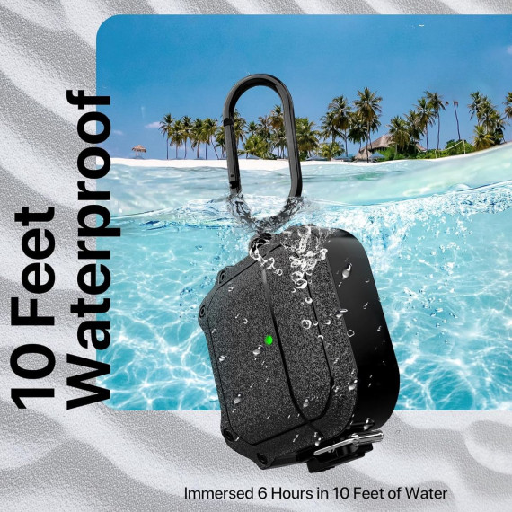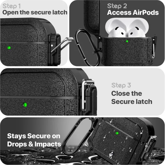HTUTWOO AirPods 4th Generation Case - Waterproof, Shockproof, Rugged Full Body Case with Carabiner Clip and Cleaning Kit (Black)