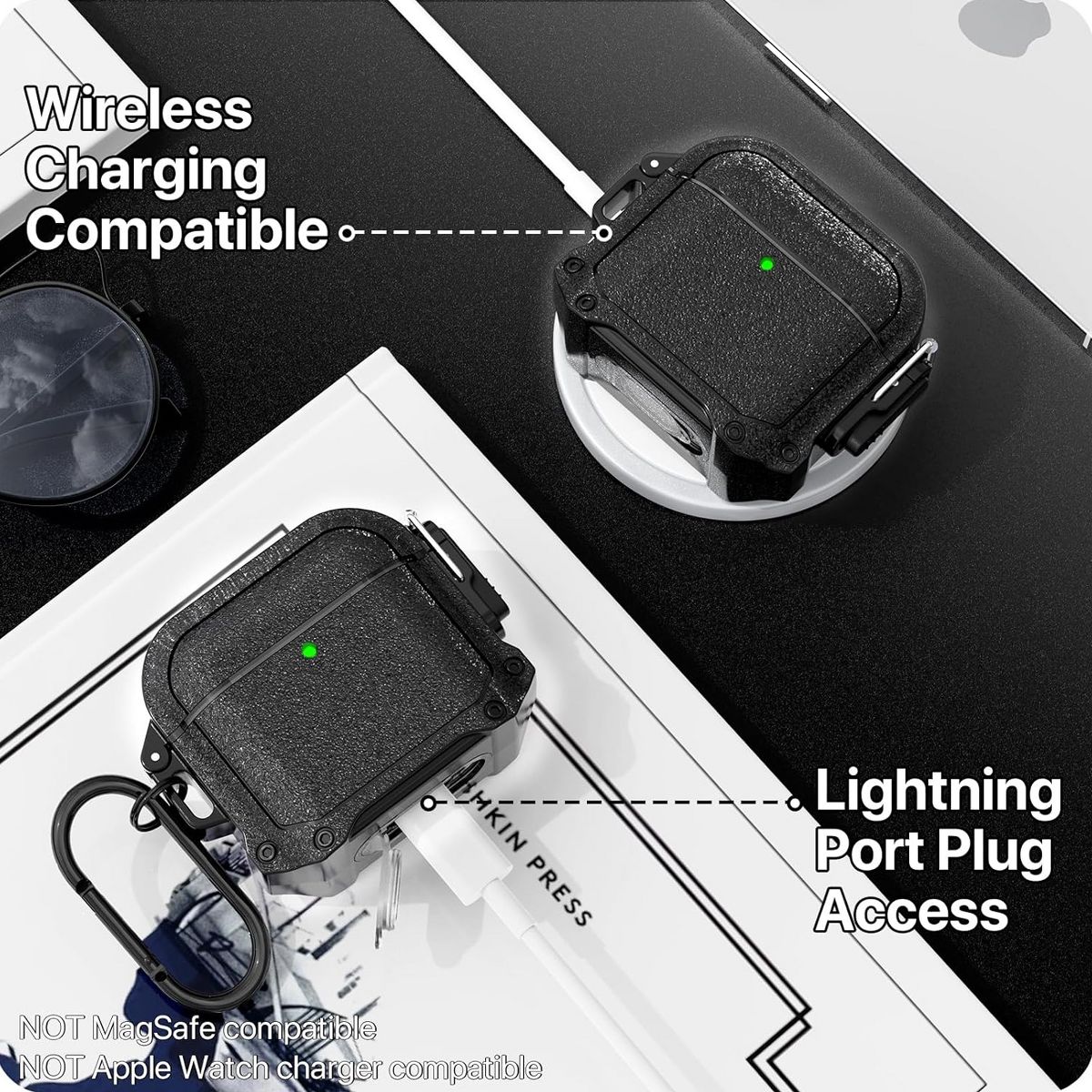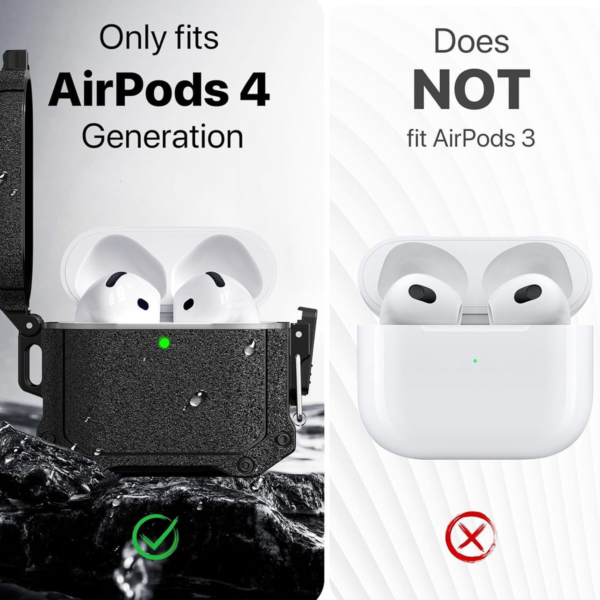 HTUTWOO AirPods 4th Generation Case - Waterproof, Shockproof, Rugged Full Body Case with Carabiner Clip and Cleaning Kit (Black)