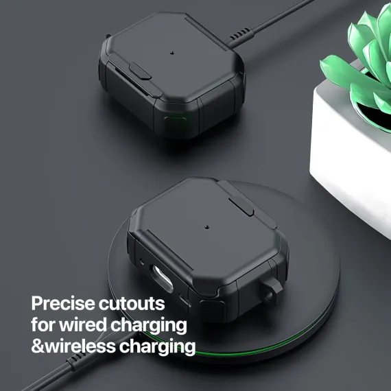 This AirPods Pro 2 Protective Case is a multi-functional accessory designed to safeguard and enhance your AirPods Pro 2, featuring a shockproof rugged build, a convenient carabiner for portability, and a built-in stand function for hands-free use. Crafted from high-quality, durable materials—typically a combination of impact-resistant TPU and hard PC—the case forms a protective barrier against drops, scratches, bumps, and daily wear, ensuring your AirPods Pro 2 stays in pristine condition, even in busy or outdoor environments.