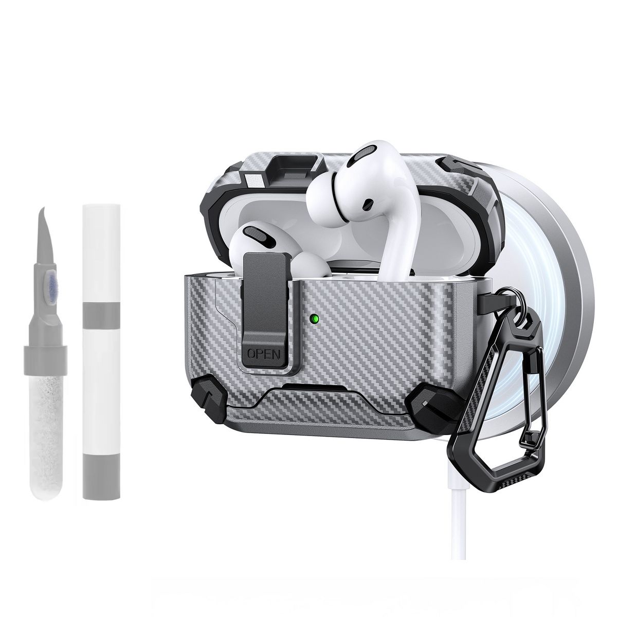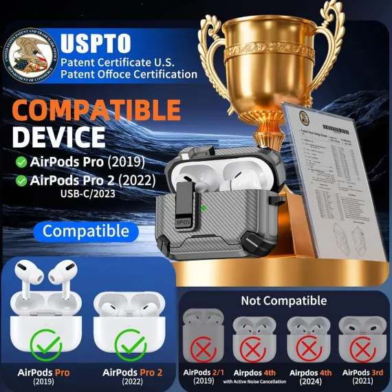 This AirPods Pro Case Cover is a multi-functional accessory designed exclusively for 2nd and 1st Generation AirPods Pro, blending security, convenience, and practicality to enhance your daily tech experience. At its core is a Magnetic Automatic Lock—a smart feature that uses strong, precise magnets to seal the case shut automatically when closed, preventing accidental openings and ensuring your AirPods Pro charging case stays securely inside. This magnetic design also fully supports Apple’s MagSafe technology: it aligns perfectly with MagSafe chargers for fast, stable wireless charging, and works seamlessly with MagSafe accessories like car mounts or wallet attachments—no need to remove the cover for charging or accessory use.