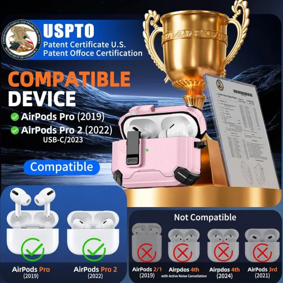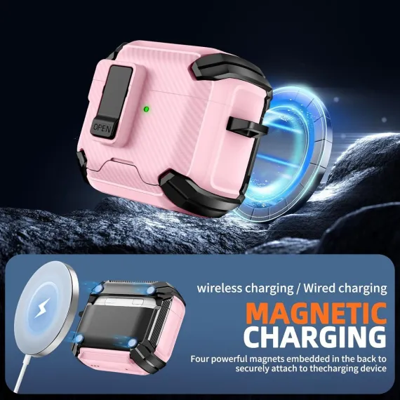 This AirPods Pro Case Cover is a multi-functional accessory designed exclusively for 2nd and 1st Generation AirPods Pro, blending security, convenience, and practicality to enhance your daily tech experience. At its core is a Magnetic Automatic Lock—a smart feature that uses strong, precise magnets to seal the case shut automatically when closed, preventing accidental openings and ensuring your AirPods Pro charging case stays securely inside. This magnetic design also fully supports Apple’s MagSafe technology: it aligns perfectly with MagSafe chargers for fast, stable wireless charging, and works seamlessly with MagSafe accessories like car mounts or wallet attachments—no need to remove the cover for charging or accessory use.