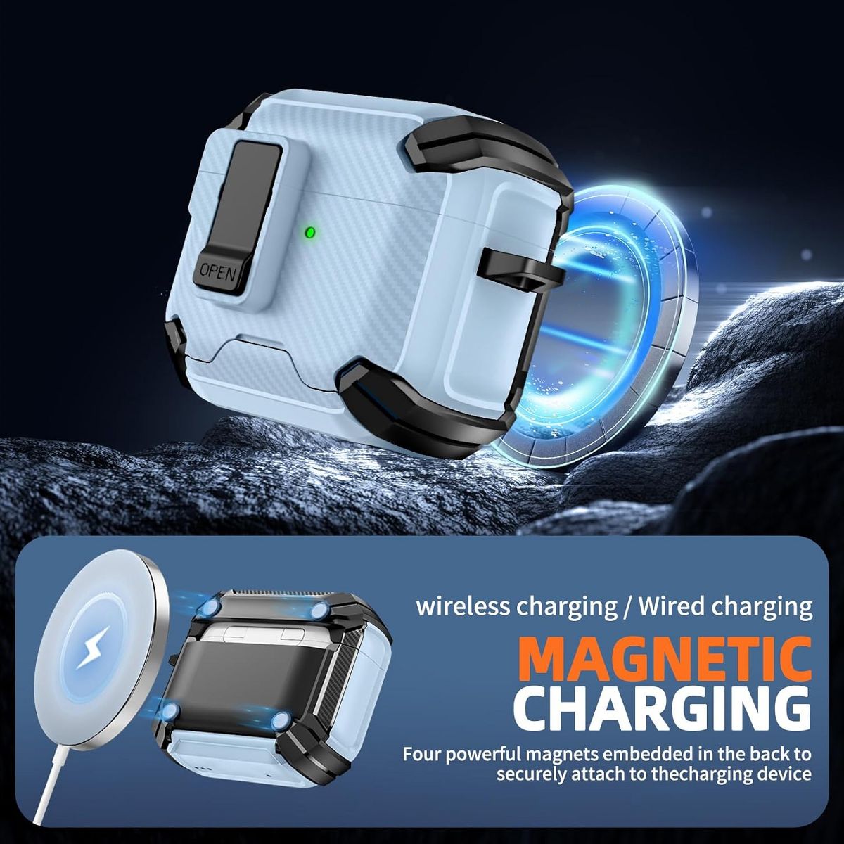 This AirPods Pro Case Cover is a multi-functional accessory designed exclusively for 2nd and 1st Generation AirPods Pro, blending security, convenience, and practicality to enhance your daily tech experience. At its core is a Magnetic Automatic Lock—a smart feature that uses strong, precise magnets to seal the case shut automatically when closed, preventing accidental openings and ensuring your AirPods Pro charging case stays securely inside. This magnetic design also fully supports Apple’s MagSafe technology: it aligns perfectly with MagSafe chargers for fast, stable wireless charging, and works seamlessly with MagSafe accessories like car mounts or wallet attachments—no need to remove the cover for charging or accessory use.
