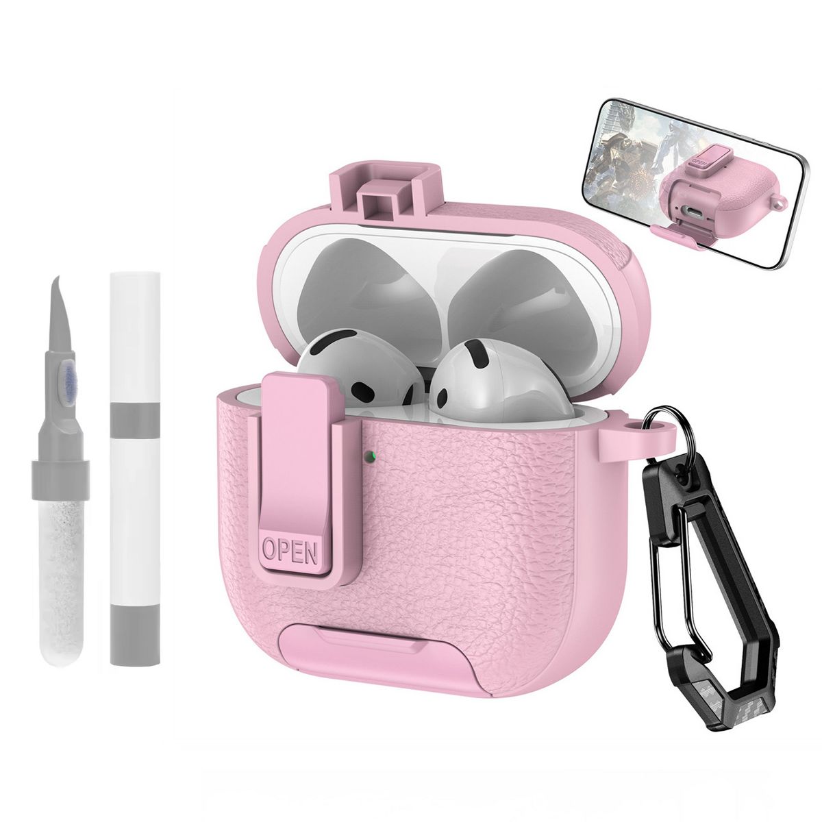This AirPods Pro Lock Clip Leather Case is a versatile, durable accessory designed to protect and enhance the usability of both AirPods Pro 2nd Generation and 1st Generation—with a focus on rugged protection, multi-functionality, and premium style. Crafted from high-quality genuine or synthetic leather, the case offers a soft yet sturdy exterior that resists scratches, scuffs, and minor drops, while its precision-cut design ensures a snug fit for your AirPods Pro charging case—keeping it secure without adding unnecessary bulk.