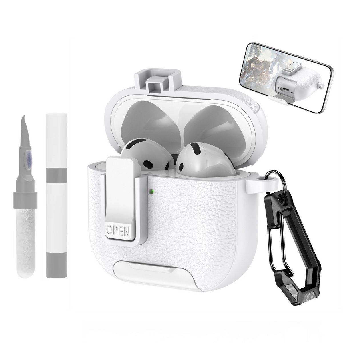 This AirPods Pro Lock Clip Leather Case is a versatile, durable accessory designed to protect and enhance the usability of both AirPods Pro 2nd Generation and 1st Generation—with a focus on rugged protection, multi-functionality, and premium style. Crafted from high-quality genuine or synthetic leather, the case offers a soft yet sturdy exterior that resists scratches, scuffs, and minor drops, while its precision-cut design ensures a snug fit for your AirPods Pro charging case—keeping it secure without adding unnecessary bulk.