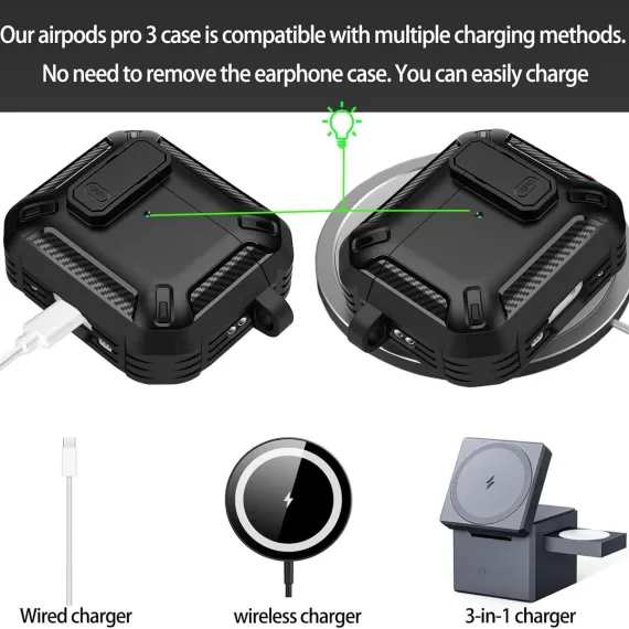 This AirPods Pro 3 Case is a user-centric protective solution built for both men and women, featuring a full drop protector design, a convenient carabiner, and a bonus cleaning kit—blending maximum protection with everyday practicality. Unlike partial-coverage cases that leave edges exposed or basic covers lacking portability features, this protective shell addresses three core needs of AirPods users: it delivers 360° full-body defense against drops, uses a durable carabiner for easy carrying, and includes a cleaning kit to keep your earbuds in top condition. Crafted from high-quality, impact-resistant TPU with reinforced corner bumpers, it balances rugged protection with a sleek, unisex design—suitable for casual daily use, workouts, commutes, or outdoor activities, and fitting seamlessly into both men’s and women’s lifestyles.