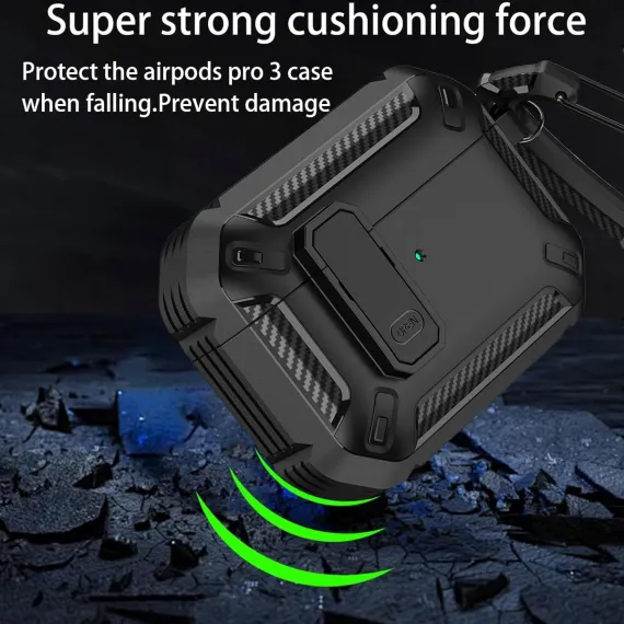 HTUTWOO AirPods Pro 3 Case, Full Drop Protector Cover with Carabiner and Cleaning Kit for Men Women (Black)
