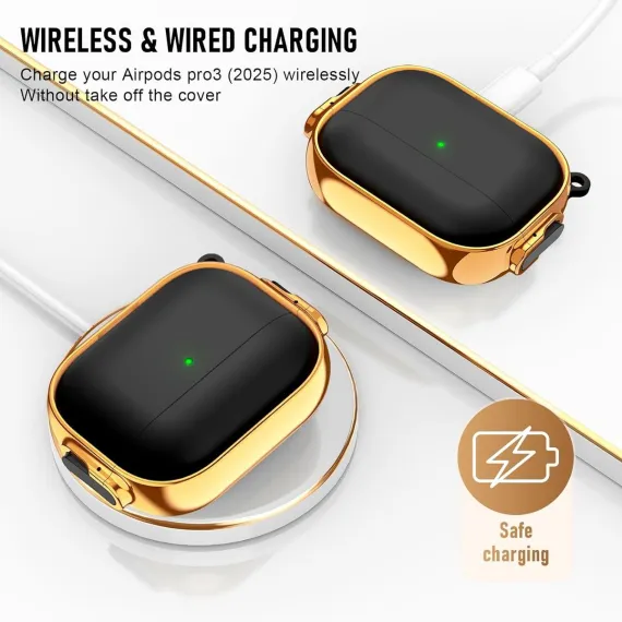 This AirPods Pro 3 Headphone Protective Case is a practical, all-in-one accessory designed to safeguard and enhance your AirPods Pro 3, featuring a soft silicone cover, a durable keychain, and a compact cleaner kit—suitable for both women and men. Crafted from high-quality, flexible silicone, the protective cover fits the AirPods Pro 3 charging case like a second skin, providing a snug, non-slip grip while shielding against daily wear and tear: scratches from pockets or bags, minor drops, dust, and accidental spills. Unlike hard plastic cases that crack easily, the soft silicone absorbs impact, keeping your AirPods Pro 3 charging case in pristine condition for longer.