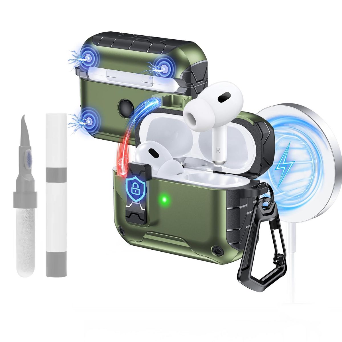 HTUTWOO Airpods Pro 3rd Automatic Opening Protective Case Full-Body Protective with Built-in Magnets and Carabiner, Black