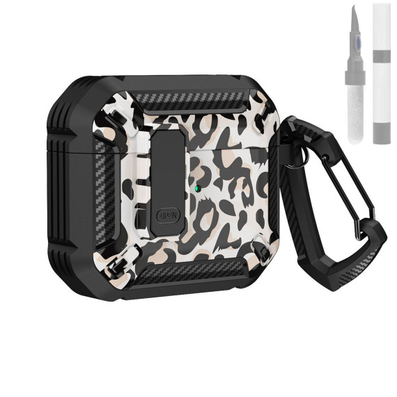 HTUTWOO Apple AirPods 3 Case Cover Solid Armor Series Cool Shockproof Protective Case with Keychain (Leopard Print)