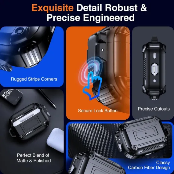 [Armour Secure Lock Case! Safely Locks your AirPods Pro in Place]: Say goodbye to worries about your AirPods Pro getting damaged or lost outdoors! Our innovative Armour Lock silicone hard protective airpods pro 2nd generation case cover with lock keychain engineered a security lock clasp on the side, keeping your earbuds securely nestled inside even during your most active moments, no accidental drops. Also when closed, it helps form a seamless bond, leaving no gaps.