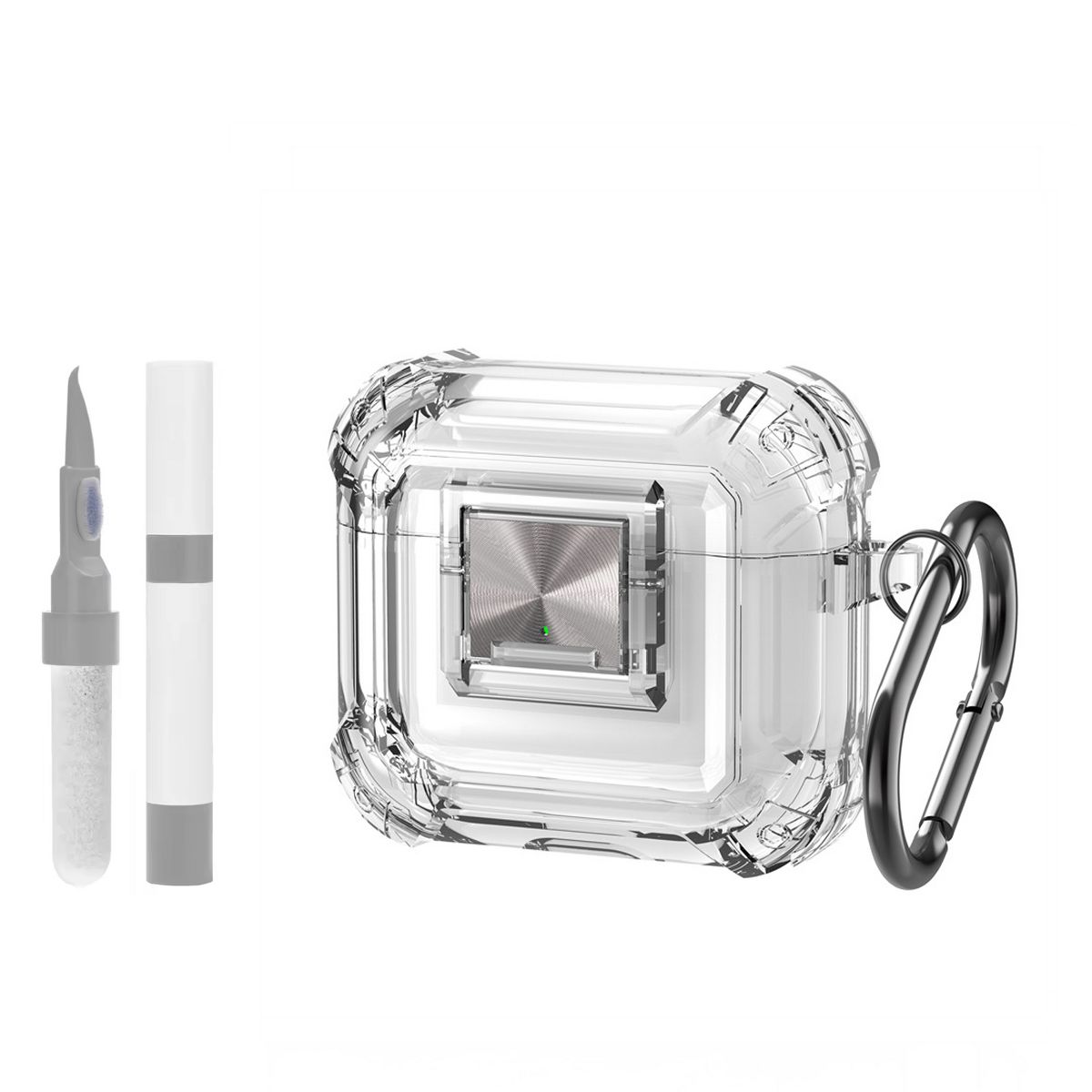 This Compatible AirPods Pro 2 Case combines sleek transparency with robust protection, featuring a crystal-clear case cover, full drop protection design, a secure lock clip, and a handy cleaning kit—tailored to keep your AirPods Pro 2 safe while showcasing its original design. Crafted from high-grade, scratch-resistant clear TPU with reinforced edges, the case offers 360° coverage for the AirPods Pro 2 charging case, shielding it from drops, scratches, dust, and daily wear without hiding its sleek aesthetic. Whether you’re using it for daily commutes, travel, or outdoor activities, this case balances style and functionality, ensuring your AirPods stay protected, visible, and easy to carry.