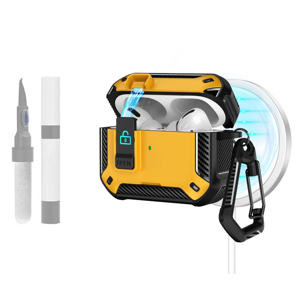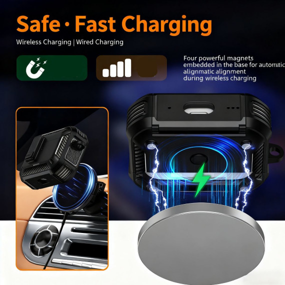 This protective case is exclusively designed for AirPods Pro 3, integrating three practical functions—back magnetic suction, a built-in phone holder, and a complimentary cleaning kit—to go beyond basic protection and meet daily user needs. Unlike standard AirPods cases that only shield the device, this cover solves three key pain points: its strong magnetic suction lets you attach the AirPods case to magnetic surfaces for easy access; the foldable phone holder transforms the case into a hands-free stand for watching videos or making calls; and the included cleaning kit keeps both your AirPods and case free from dust and earwax. Whether you’re commuting, working, or maintaining your device, this 3-in-1 case balances protection, convenience, and versatility for AirPods Pro 3 users.