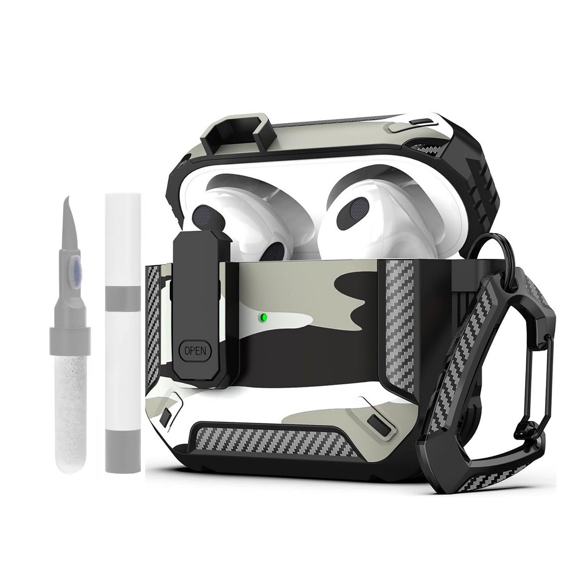 HTUTWOO for AirPods 4 Generation Case Cover with Cleaner Kit, Hard Shell Protective Armor with Lock for AirPods 4