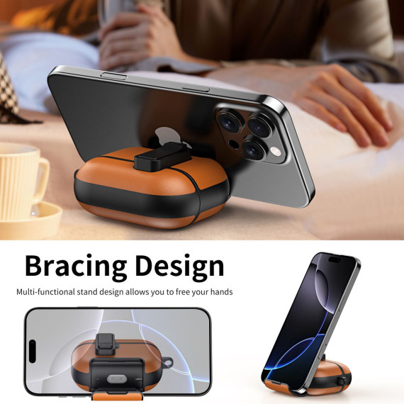 This Leather Case for AirPods 4 redefines headphone protection with a blend of premium texture, all-around defense, and smart multi-functional features—making it a sleek, practical accessory for both men and women. Crafted from high-quality leather, it serves as an all-round protective cover that shields your AirPods 4 from scratches, drops, and daily wear, while integrated extras like a hidden bracket, magnetic lock, and included cleaning kit elevate its usability beyond basic cases.