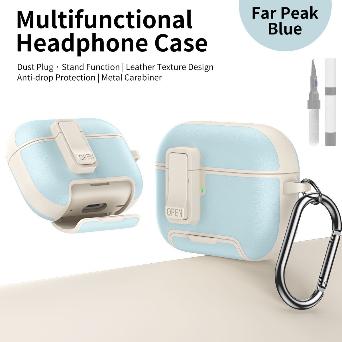This Leather Case for AirPods 4 redefines headphone protection with a blend of premium texture, all-around defense, and smart multi-functional features—making it a sleek, practical accessory for both men and women. Crafted from high-quality leather, it serves as an all-round protective cover that shields your AirPods 4 from scratches, drops, and daily wear, while integrated extras like a hidden bracket, magnetic lock, and included cleaning kit elevate its usability beyond basic cases.