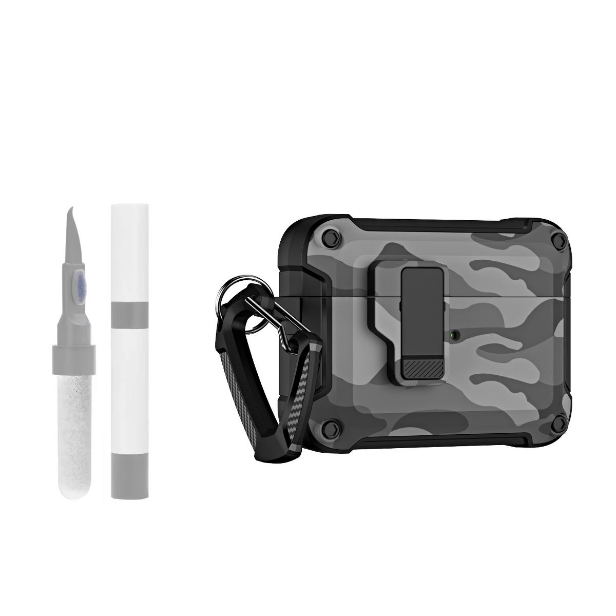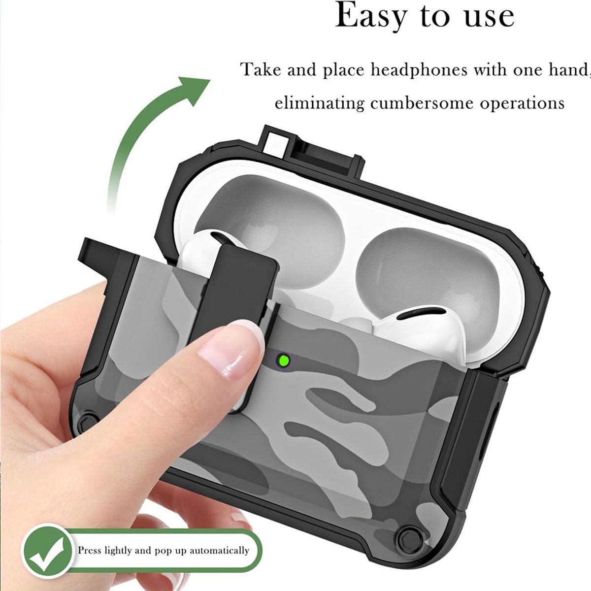 HTUTWOO for AirPods Pro 2 Case Cover Camouflage with Keychain & Secure Lock Clip, Automatic Pop-up Case for Apple AirPod Pro 2nd/1st Gen,Camo Gray