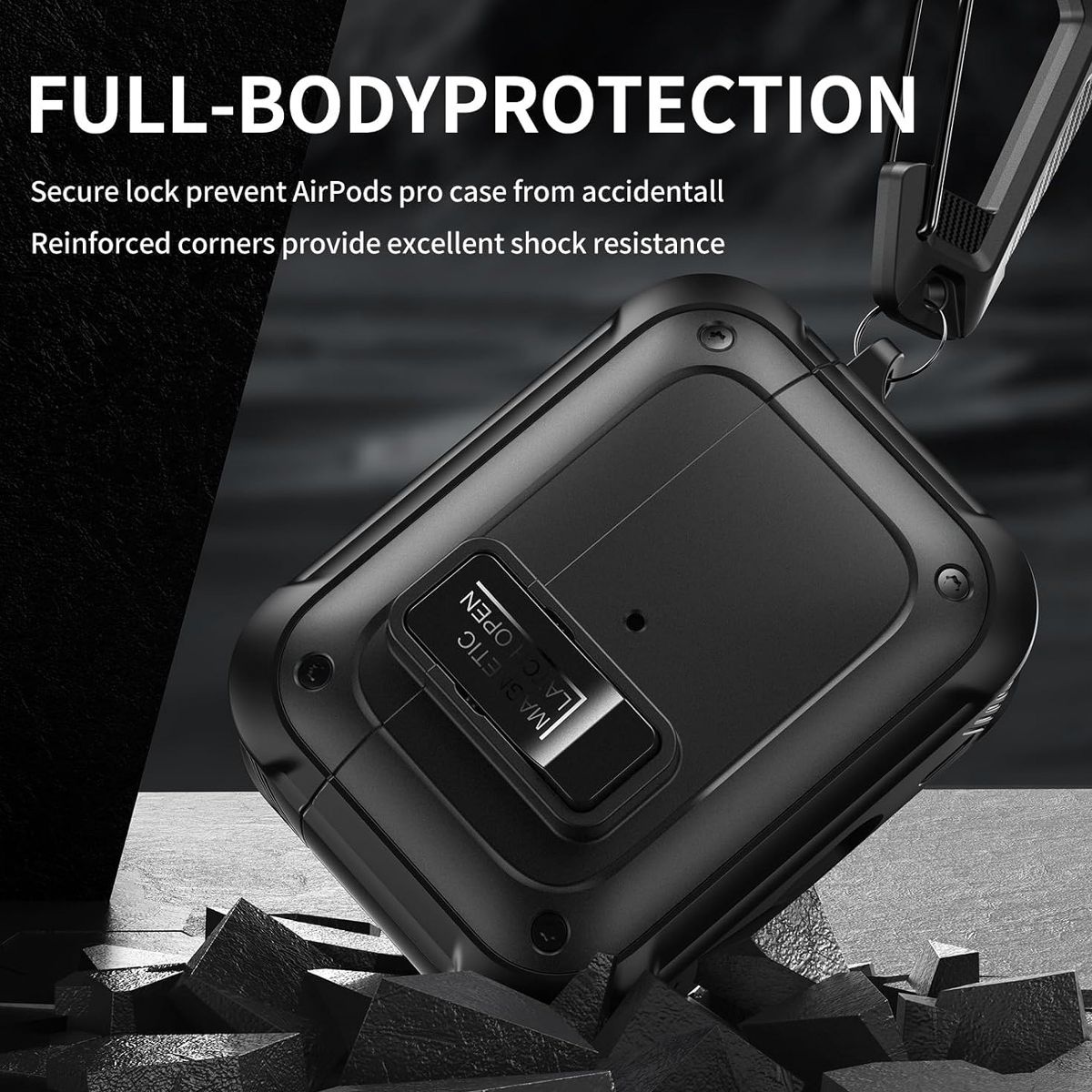 This Magnetic Shockproof Hard Shell Case is tailor-made to protect and enhance your AirPods Pro 1st and 2nd Generation, blending robust defense with user-friendly design—plus essential extras to simplify daily use. Unlike one-size-fits-none covers or flimsy cases that fail to shield against drops, this case solves 4 key pain points for AirPods users: its shockproof hard shell absorbs damage from accidental drops , keeping your AirPods Pro safe from dents or cracks; the built-in magnetic closure ensures the lid snaps shut securely, preventing accidental openings and dust entry—no more loose lids that expose your earbuds; the included durable metal carabiner clips to backpacks, purses, or belt loops, so you never lose or fumble for your AirPods in cluttered bags; and the bonus cleaning kit lets you keep the case, earbud grilles, and charging port free from dust, debris, and fingerprints—maintaining clear sound and smooth charging.