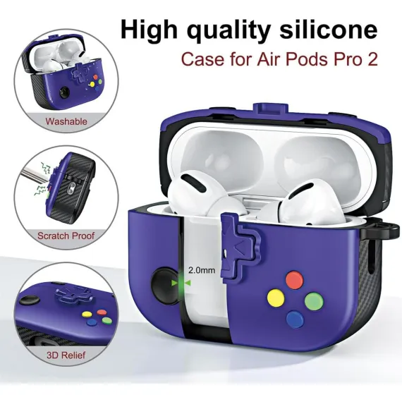 UNIQUE GAME INSPIRED DESIGN: This protective case features a classic game console design, inspired by retro handheld controllers, adding a playful and nostalgic touch to your for AirPods Pro 2. The raised buttons not only enhance the visual appeal but also provide a tactile experience, making every interaction feel fun and engaging. Perfect for gamers and tech enthusiasts alike, this eye catching accessory lets you showcase your unique style and stand out from the crowd!