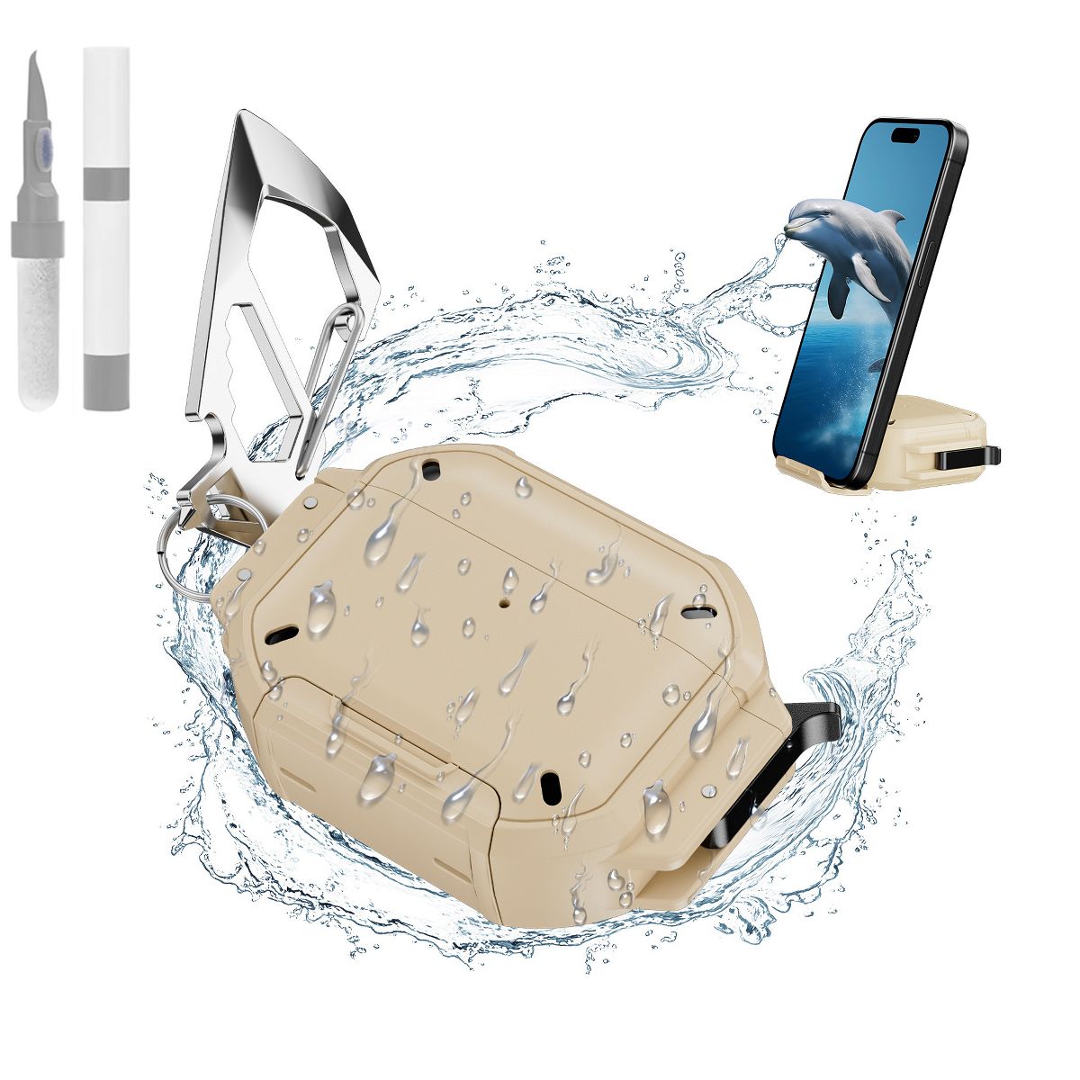 Protect and personalize your AirPods Pro 3 with this heavy-duty yet sleek hard shell case—engineered to shield your 3rd Gen earbuds from scratches, spills, and daily bumps, while adding convenient extras to simplify your routine. Unlike flimsy soft cases that tear easily or basic covers that lack practicality, this hard shell design solves 4 key pain points for AirPods users: its rigid, scratch-resistant shell repels scuffs from keys, bags, or desks; the waterproof coating blocks accidental splashes from seeping in and damaging your device; the included metal carabiner clips securely to backpacks, purses, or belt loops—so you never fumble to find your earbuds in a cluttered bag again; and the bonus cleaning kit lets you keep the case, earbud grilles, and charging port free from dust and debris.