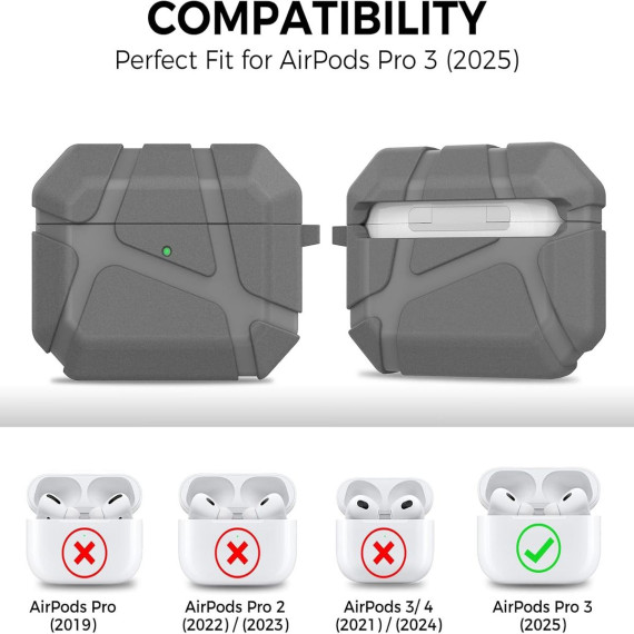 This AirPods Pro 3 Case redefines device protection with its rugged armor design, full drop-proof construction, and practical accessory bundle—including a durable keychain and a dedicated cleaner kit—making it an essential safeguard for your AirPods Pro 3 while enhancing daily usability. Tailored to fit the AirPods Pro 3 case like a second skin, its precision-machined hard shell features reinforced edges, raised bezels, and a textured armor pattern that mimics tactical gear—blending tough protection with a sleek, modern aesthetic that avoids the bulk of generic heavy-duty cases.