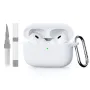 HTUTWOO for Airpods Pro 3 Case, Thick Silicone Protective Cover with Carabiner and Cleaning Kit, Supports Wireless Charging (White)