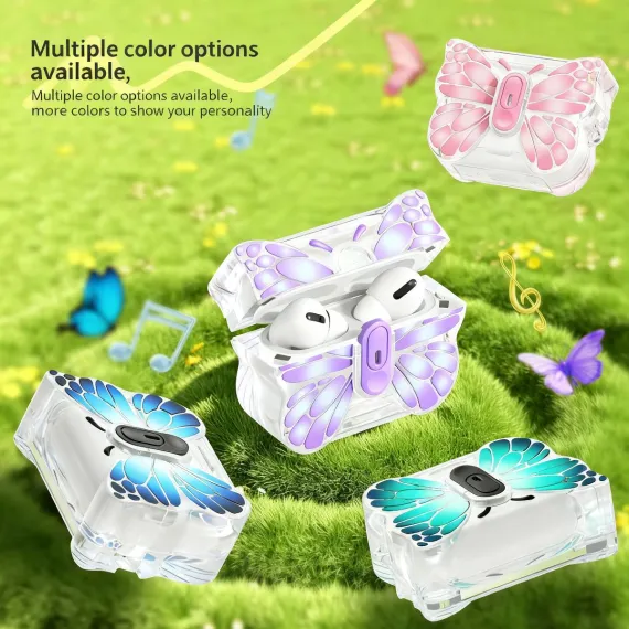 This case is exclusively designed for AirPods Pro 3, blending stylish aesthetics with practical functionality—featuring a transparent body adorned with a delicate butterfly pattern, anti-fall protection, an auto pop-up lid, a built-in kickstand, and a complementary cleaning kit. Unlike generic AirPods cases that sacrifice style for durability or lack user-friendly features, this cover solves four key pain points for AirPods Pro 3 owners: its transparent design showcases the original look of the earphone case while the butterfly pattern adds a subtle, elegant touch; the anti-fall structure absorbs impact from accidental drops, preventing scratches or cracks on the AirPods Pro 3 case; the auto pop-up lid opens smoothly and stays in place when needed, eliminating the hassle of stiff or loose lids that are hard to open; and the built-in kickstand lets you prop the case upright on desks or tables—convenient for checking battery status at a glance or keeping the case organized.