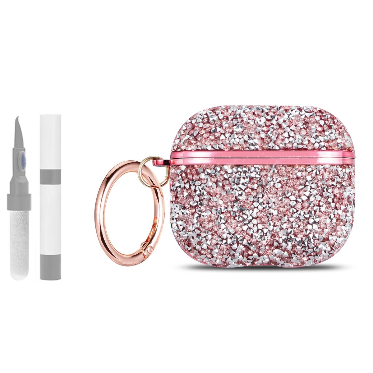 This earphone case features a shock-absorbing TPU shell that effectively cushions accidental drops, bumps, and scratches, protecting your AirPods Pro 3 charging case and earphones from everyday wear and tear. The included sturdy keychain easily attaches to your bag, wallet, or keychain to prevent loss and keep your earphones within easy reach. Precise cutouts ensure unobstructed access to the charging port and pairing button, and the case is also compatible with wireless charging. Whether you're heading to a coffee shop, meeting friends, or commuting, this rhinestone-studded, sparkling case perfectly balances dazzling style, practical protection, and portability, making it the ideal choice for discerning AirPods Pro 3 users.