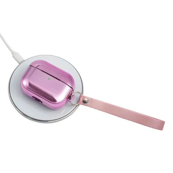 Infinite Curiosity Case Compatible with AirPods Pro - Glitter Plating Cover with Hand Strap, Pink