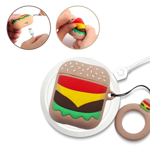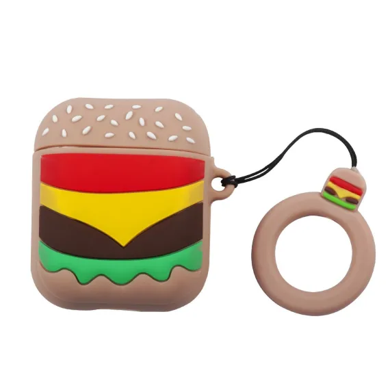 Infinite Curiosity Cute Case Compatible with AirPods 1 & 2 - Hamburger Cartoon Silicone Cover with Ring Strap