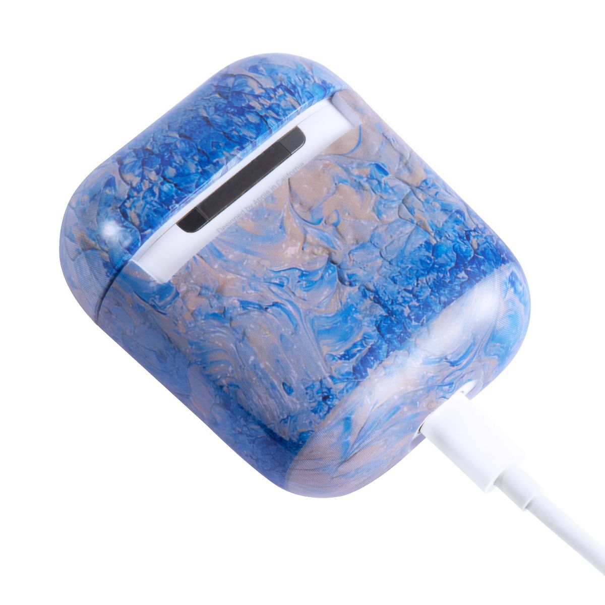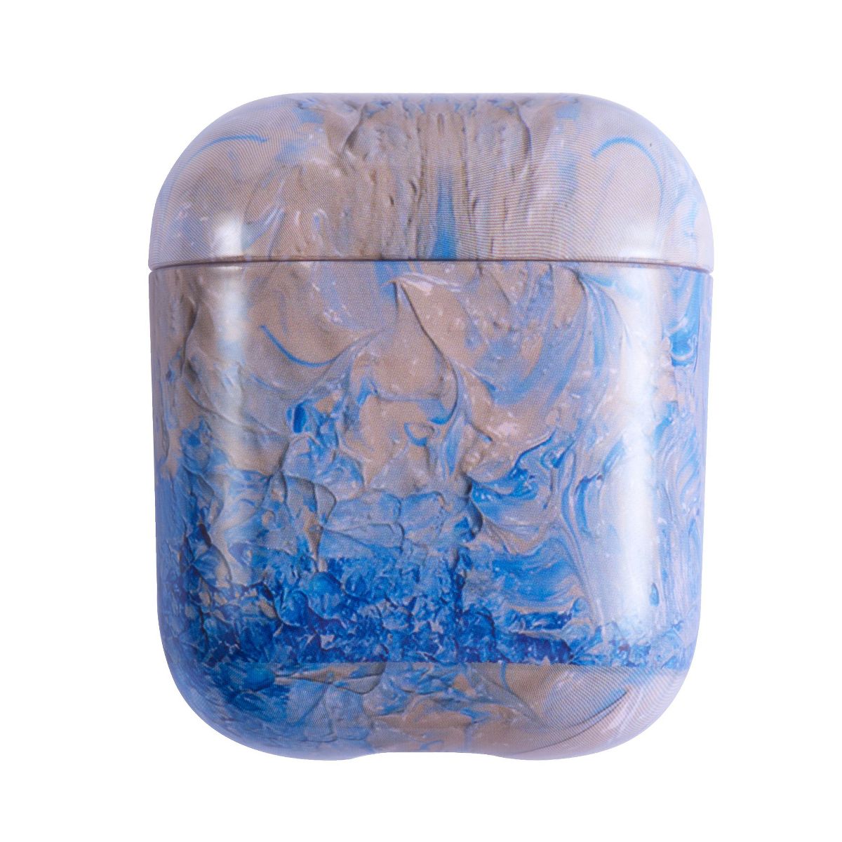 Insten Case Compatible with AirPods 1 & 2 - Glossy Marble Pattern Skin Cover, Gray Blue