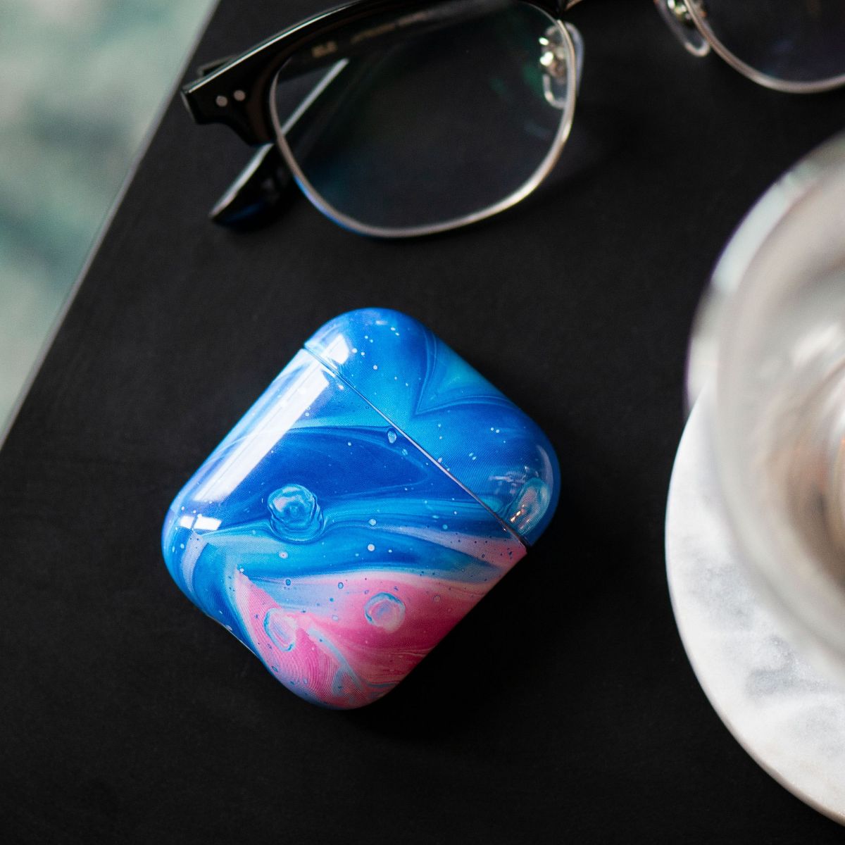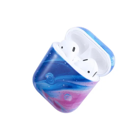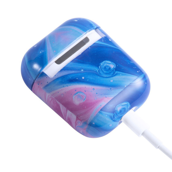 Insten Case Compatible with AirPods 1 & 2 - Glossy Marble Pattern Skin Cover, Space Blue Pink