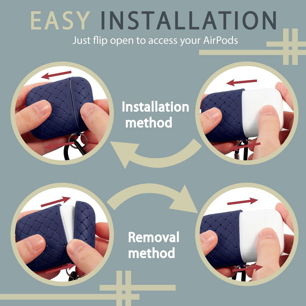 The Insten cute and cool weave shape TPU carrying case pouch covers compatible with Apple AirPods 1st Generation and 2nd Generation for man, woman, boys, girls, men and women is a perfect accessory to protect your airpods 1 and 2’s wireless charging case. These Airpod accessories are durable. It offers great protection and supports wireless and wired charging of Apple earbuds. Accessory only; device not included. Apple, iPhone®, iPad®, iPod® are registered trademarks of Apple, Inc. Apple does not endorse the use of these products. Product names are trademarks of listed manufacturers or other owners, and are not trademarks of eForCity Corp. The manufacturer does not necessarily endorse the use of these products.