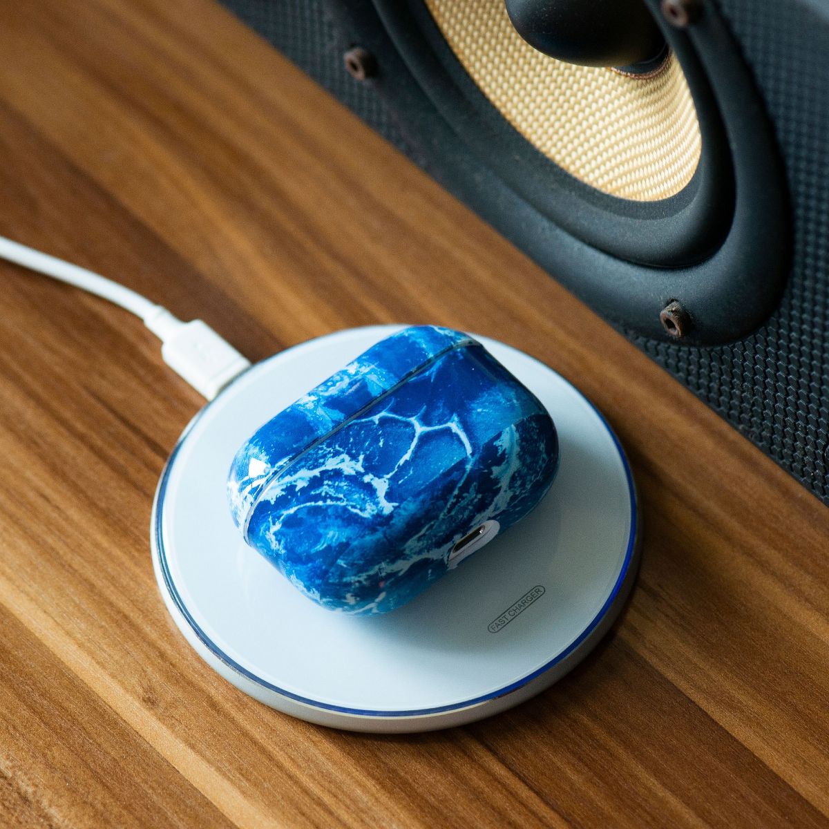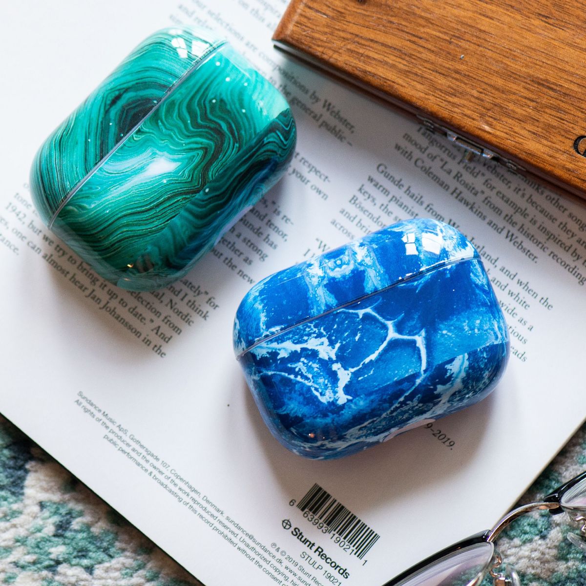Insten Case Compatible with AirPods Pro - Soft Glossy Marble Skin Cover, Sea Blue