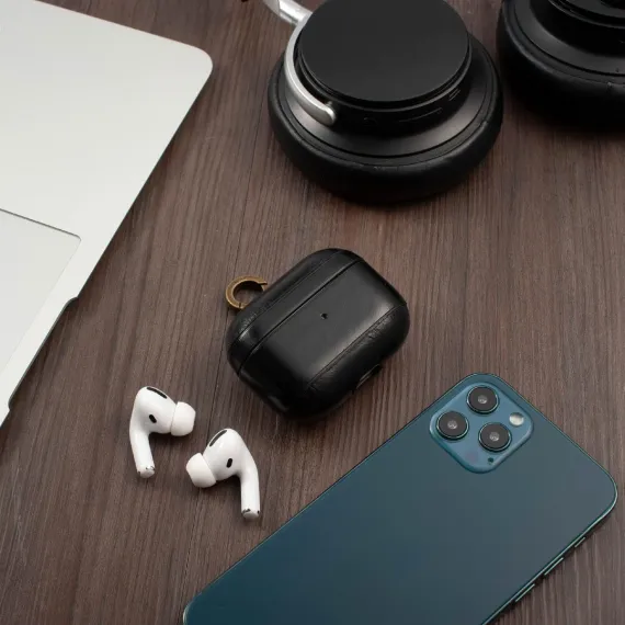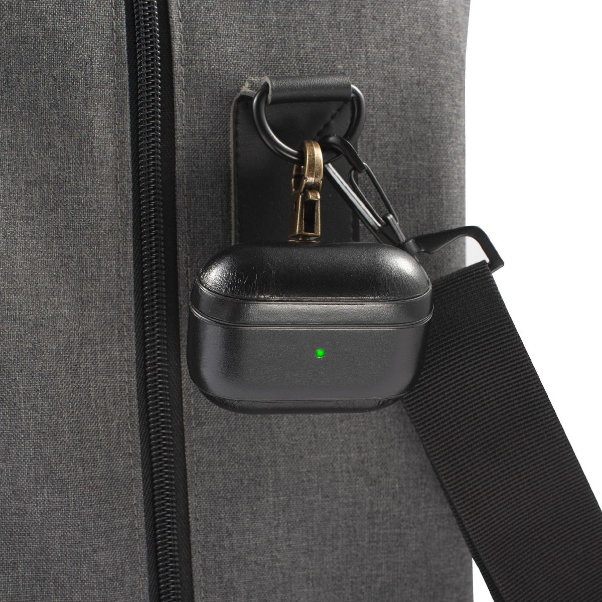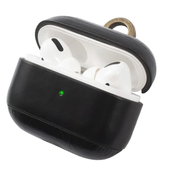 Insten Genuine Leather Case Compatible with AirPods Pro - Protective Cover with Keychain, Black