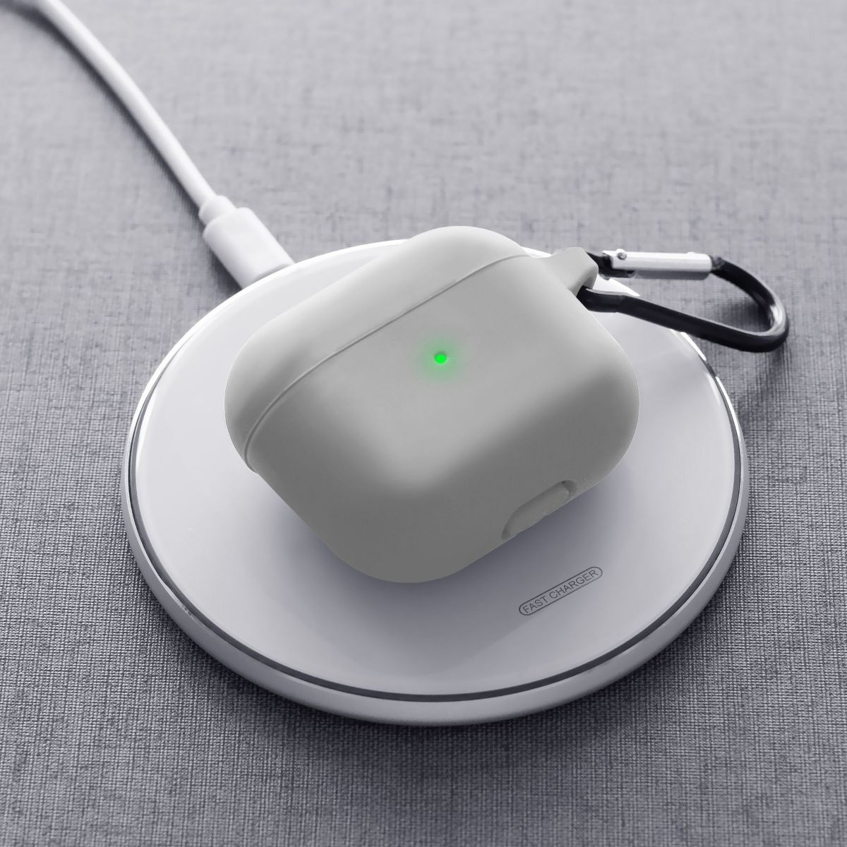 Insten Silicone Case Compatible with Airpods 3 3rd Gen 2021 Earbuds Protective Cover with Carrying Keychain for Girls Women Boys Men, Gray