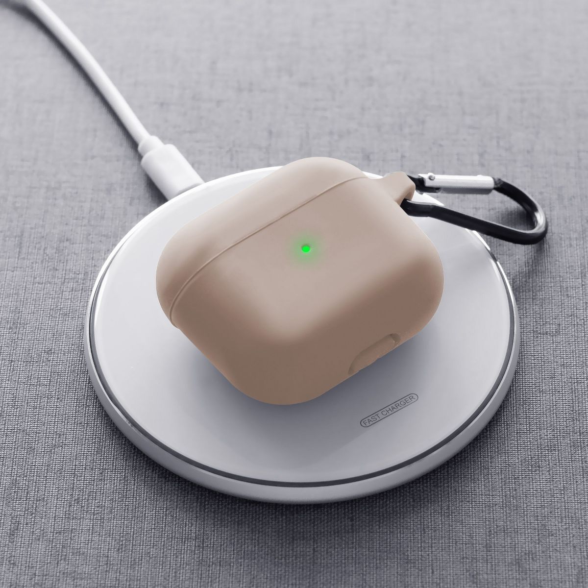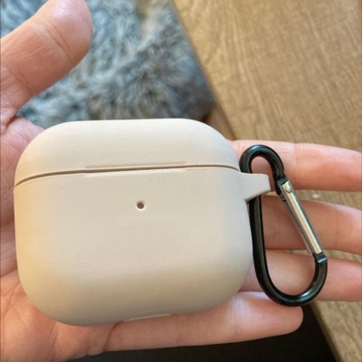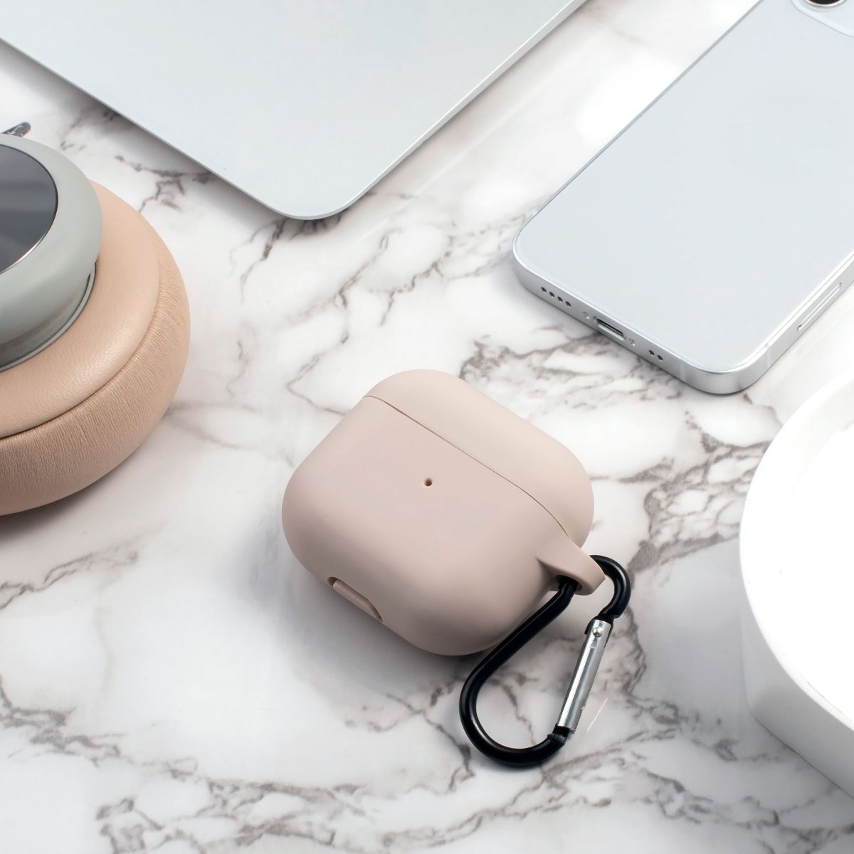 Protect your beloved earbuds with our stylish yet simplistic slim case. It absorbs shock from drops and high impact and offers full all-around protection and prevents scratches. Ultra-thin sleeve provides immense protection but with no added bulk nor weight. Made with silicone material, it has a sleek look that is smooth to the touch. Anti-fingerprint surface keeps it looking clean and fresh. Ergonomically designed to visibly see front LED light, you can check on charging status anytime. Works with both wired or wireless chargers too. Precise cutouts allow easy access to all controls and ports without removing the case. Hooded one-piece design prevents you from accidentally losing the cap. Carabiner keychain included for easy carrying and easy attaching to jeans, bags, and more. * This case is compatible with AirPods 3 only. * Color: Sand Pink * Note: This item is a silicone case only. Actual earbuds not included.