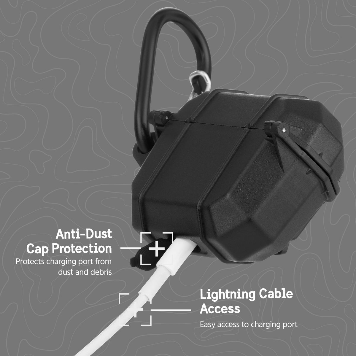 The Pelican Marine Series AirPods Pro 2 case / AirPods Pro 1 case is IP68 certified to protect your device from water, dust, and snow with its rugged yet soft-touch design. Made of durable hard shell materials, it offers military-grade drop protection against scratches, bumps, and drops. The case comes equipped with an anti-fingerprint and anti-dust coating, keeping it smudge-free and shining. Additionally, precisely designed port covers prevent dust from entering the device and scratching its body. The protective case is compatible with both wired (Lightning) and wireless (Qi) charging without the need to be removed, offering an easy charging experience. The AirPods Pro case also features a detachable carabiner clip for convenient attachment to your pouch, handbag, or backpack. It has a 4-corner airbag design and shock-absorbent materials for protection during physical activity, making it a reliable choice for AirPods Pro protection.