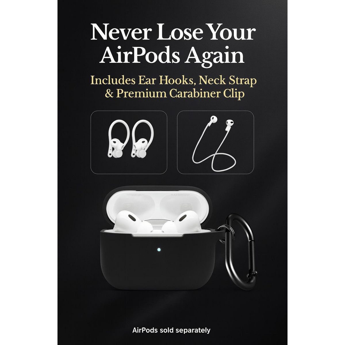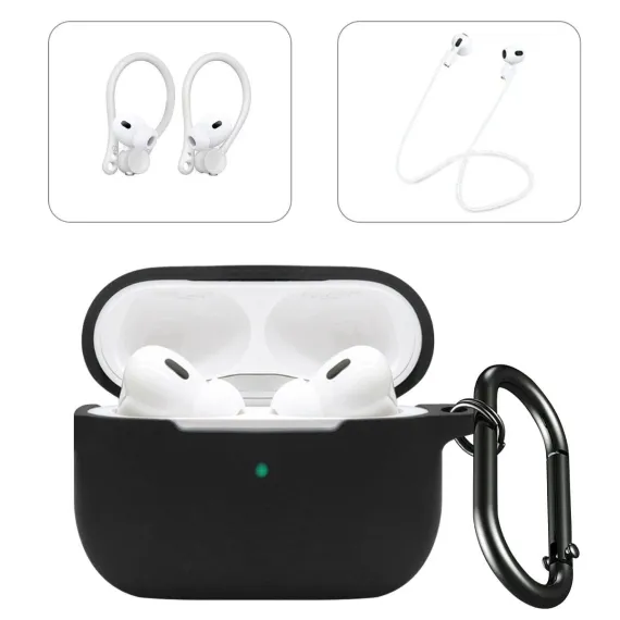 Protect your Apple AirPods Pro (3rd Gen) with the SaharaCase Venture Series Silicone Case. This slim, form-fitting case offers durable silicone construction to shield against scratches, dirt, and daily wear. Shock-absorbing corners defend against drops, while the included carabiner clip provides convenient attachment to bags or belts. For added security, the set includes earbud attachments and an over-the-shoulder strap, keeping your AirPods safe during travel, workouts, or everyday use.