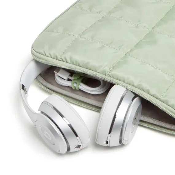 Safeguard your tech in style with U Brands® Nylon Puffer Zipping Tech and Headphones Sleeve Cover and step out confidently knowing your device is snugly protected. This 9" x 11.5" tech and headphones pouch is softly padded to shield your electronics from the hustle and bustle of daily life. The plush interior lining is gentle against your device, preventing scratches and scuffs that can occur during travel. It's an ideal carry-all for your over-ear headphones, charging cables, mouses, adapters, styluses, and more, easily accommodating most standard-size headphones. The durable construction ensures longevity with minimal maintenance, while the soft silicone zipper pull guarantees a smooth, secure closure every time. Whether you’re heading to a café for a work session or traveling across town, these headphones and tech sleeve offer the ultimate protection and style for your accessories. A great a gift for anyone passionate about cool tech gadgets, computers, electronics, and office desk accessories.