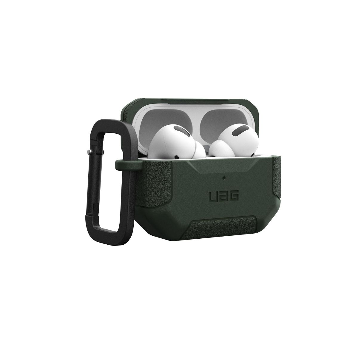 The Scout Series is here to protect your AirPods from your daily adventures and further. Featuring smooth channels, distinguished bumpers, and UAG brand detail this case has a rugged look along with serious protection. With a durable 2-piece military drop tested TPU construction designed to shield your AirPods from drops and scratches. Heavy grip textured bumpers provide a non-slip grip. Easy and full access to the lighting port. Wireless charging compatible with most 3rd party chargers without removing the case. Convenient detachable carabiner clip so you can securely take your AirPods on the go. Tackle every day with ease knowing your AirPods are secured and safe from the elements.