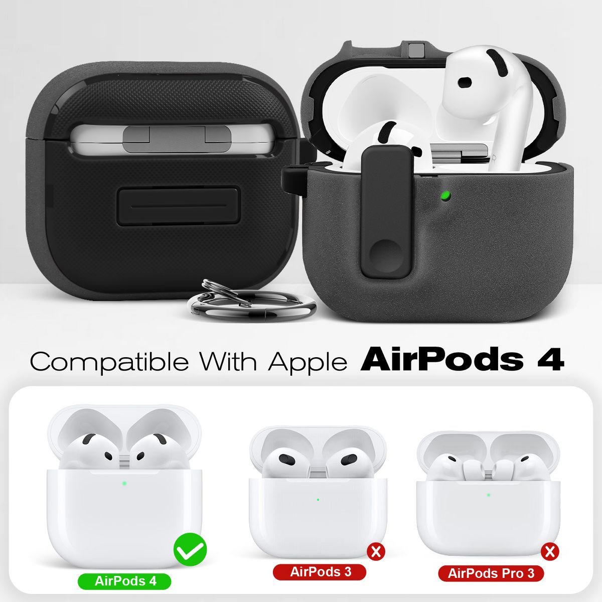 This ultra-high quality TPU + PC protective case fits the AirPods 4 Active Noise Cancellation wireless charging case with speaker for Find My, that you can charge using an Apple Watch charger or Qi-certified charger. Precision cut ports allow access to the USB-C charging port and easy visibility of the LED indicator. This product does not add wireless charging capability to the AirPods 4 USB-C charging case.