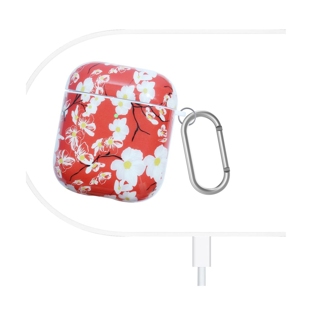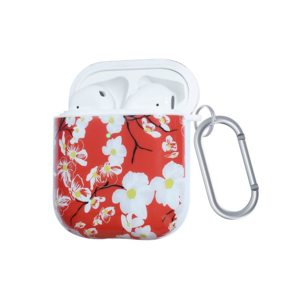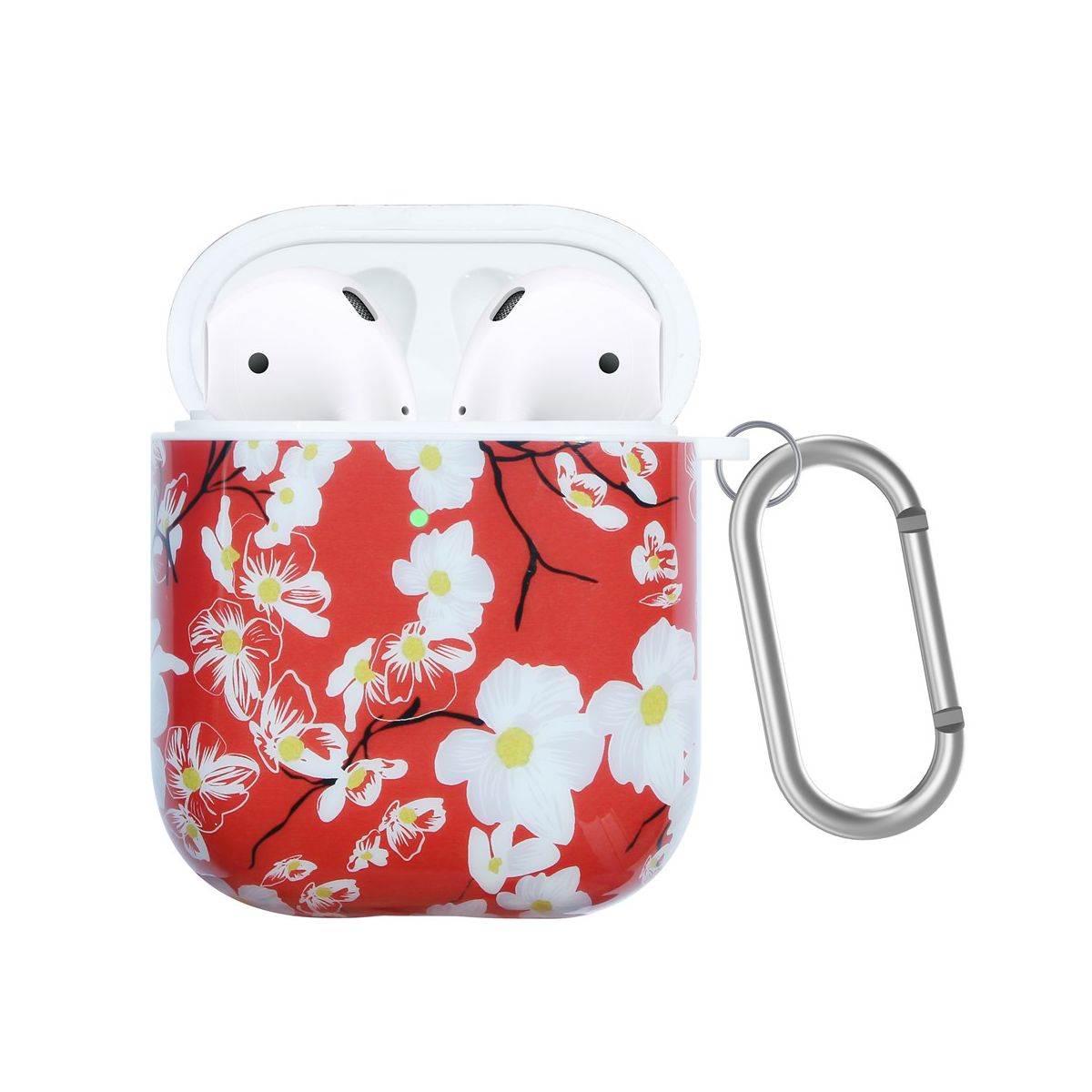 Waloo Floral Printed Hard Case For AirPods with Hook - For AirPods 1/2 - Floral Red