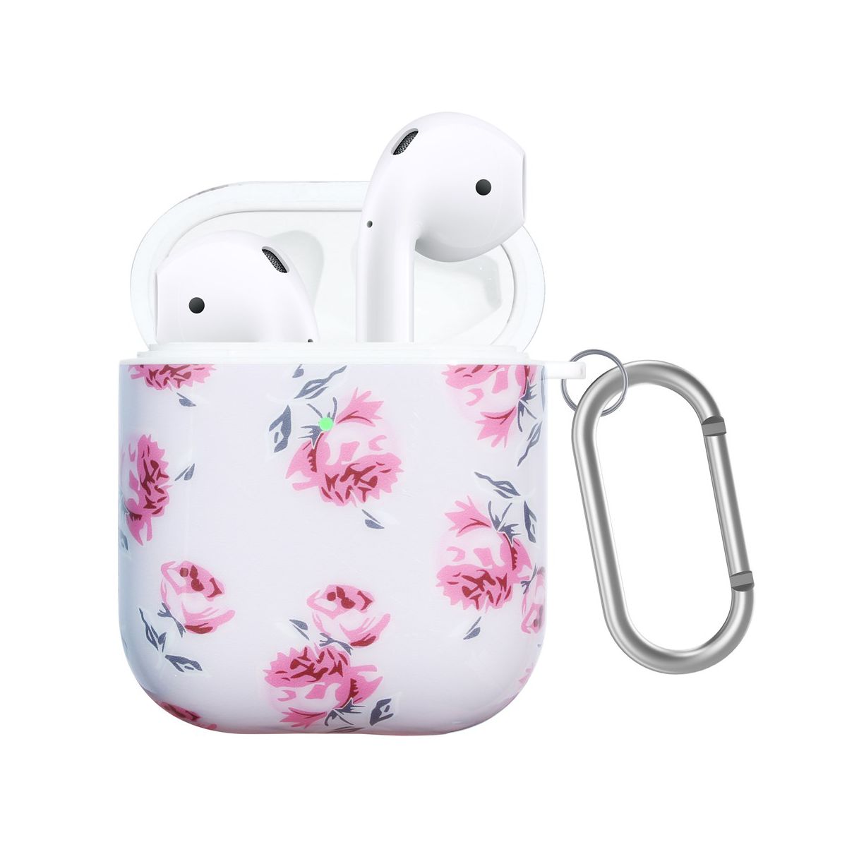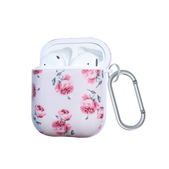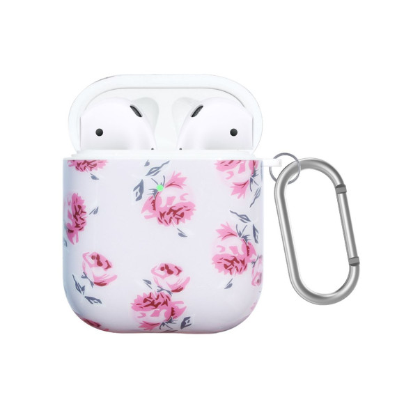 Waloo Floral Printed Hard Case For AirPods with Hook - For AirPods 1/2 - Floral Red
