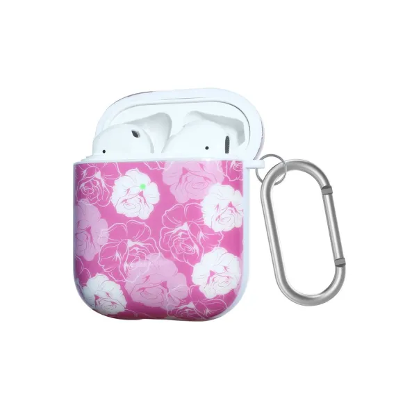 Waloo Floral Printed Hard Case For AirPods with Hook - For AirPods 1/2 - Floral Red