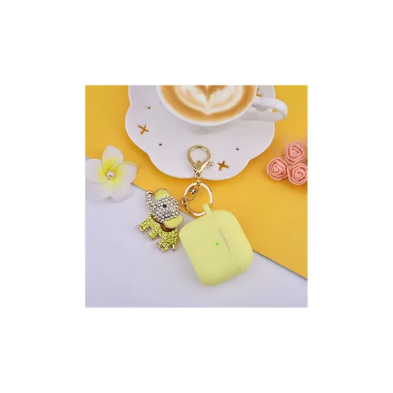 Worryfree Gadgets Case Compatible with Airpods 3 Case Cover Soft Silicone Protective Case for Airpods Case with Bling Elephant Keychain - Yellow