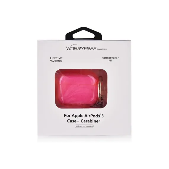 Worryfree Gadgets Case Compatible with Apple AirPods 3 Case Gen 3 Clear Protective TPU Cover Skin Wireless Charging with Carabiner - Pink