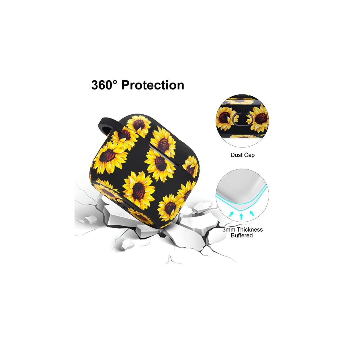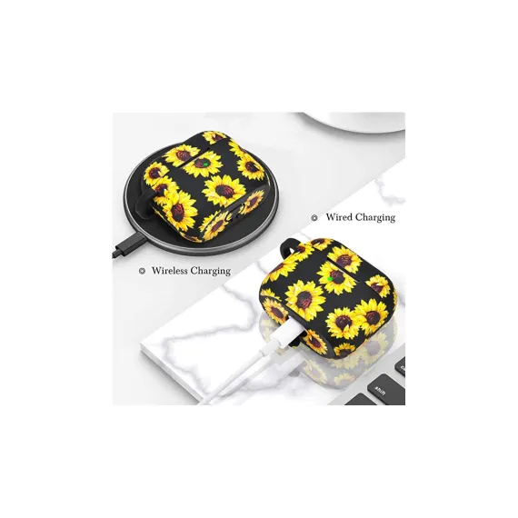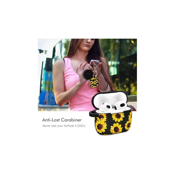Worryfree Gadgets Case Compatible with Apple Airpods 3 Generation 3rd Cases Silicone Earbuds Case Cover for Women Girls Wireless Charging Sunflower