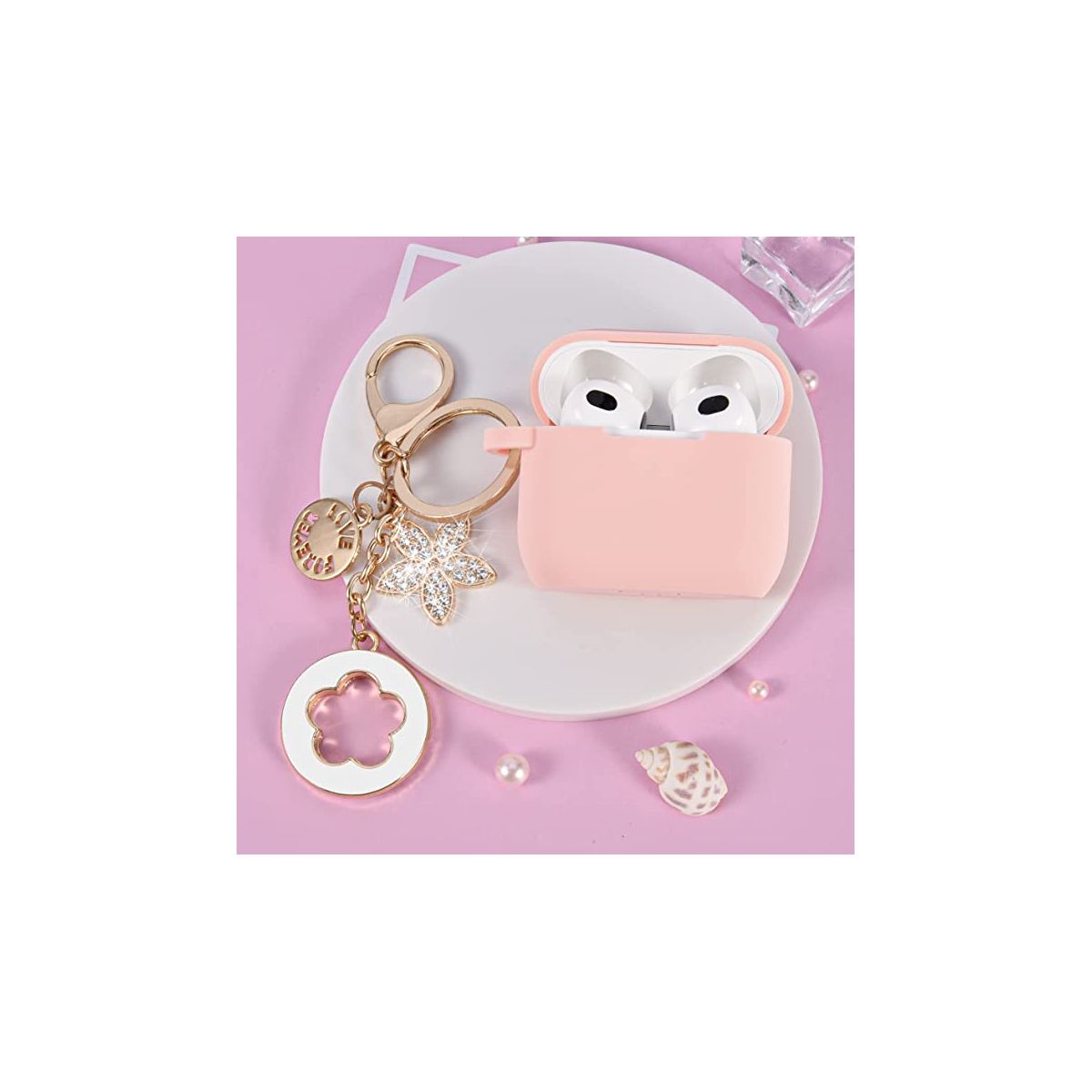 Worryfree Gadgets Case Compatible with Apple Airpods 3 Generation 3rd Cases Silicone Earbuds Case Cover Women Wireless Charging Case with Accessories Bling Love Forever Keychain, Pink
