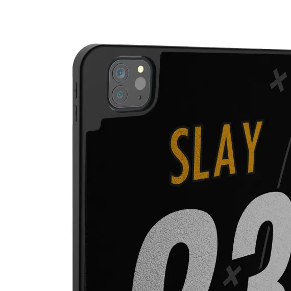 This iPad Case is both lightweight and durable, allowing the cover to fold behind for easy use and accessibility. Made of PU leatherette with microfiber lining and soft TPU to hold the iPad and Apple Pencil, this case provides extra protection against accidental bumps and scratches. Designed with dual standing position for users to adjust the viewing angle. Richly textured printing and the vibrant, full-color, officially-licensed design brings your loyalty to life. Designed and decorated by Keyscaper in Tualatin, Oregon, USA.